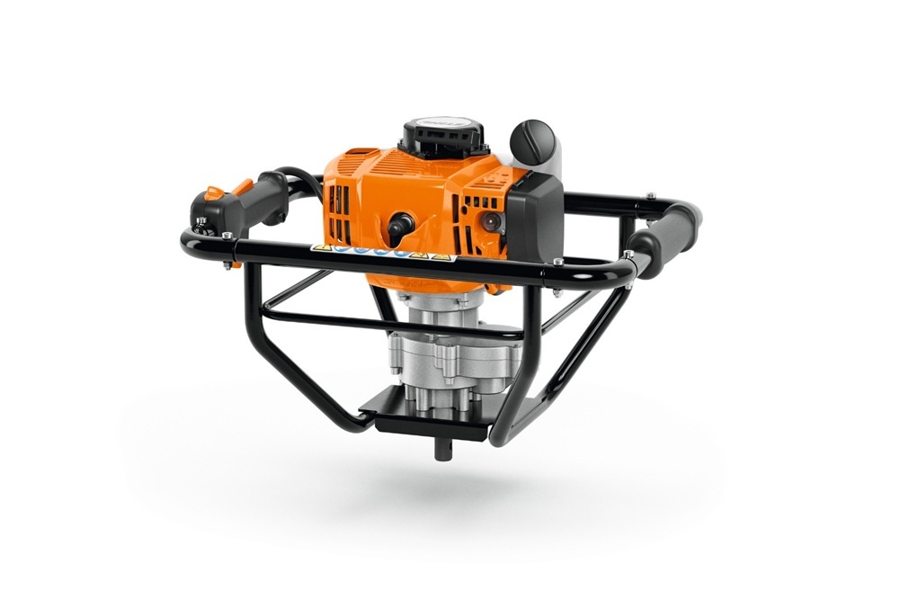 El motor de gasolina STIHL de alto rendimiento proporciona la potencia necesaria para perforar agujeros con un diámetro de hasta 250 mm. La barrena de tierra BT 230 está equipada con una bomba de combustible manual que facilita el arranque, por ejemplo, después de que la herramienta no se haya utilizado durante mucho tiempo. Esto bombea combustible al carburador con solo presionar un botón, lo que reduce el número de tirones de cable necesarios para el arranque.